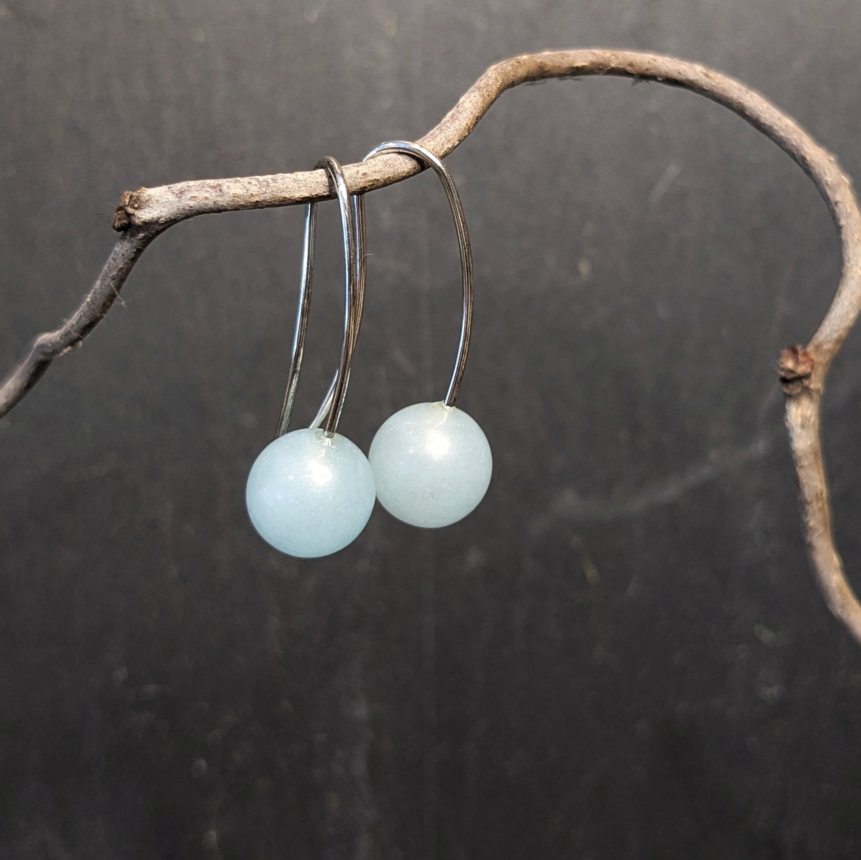 Enkle og lette ørekroge med smukke 10 mm amazonit sten i fin lyseblå nuancer. Et roligt og naturligt udtryk, der falder flot og giver et fint farvespil uden at dominere.