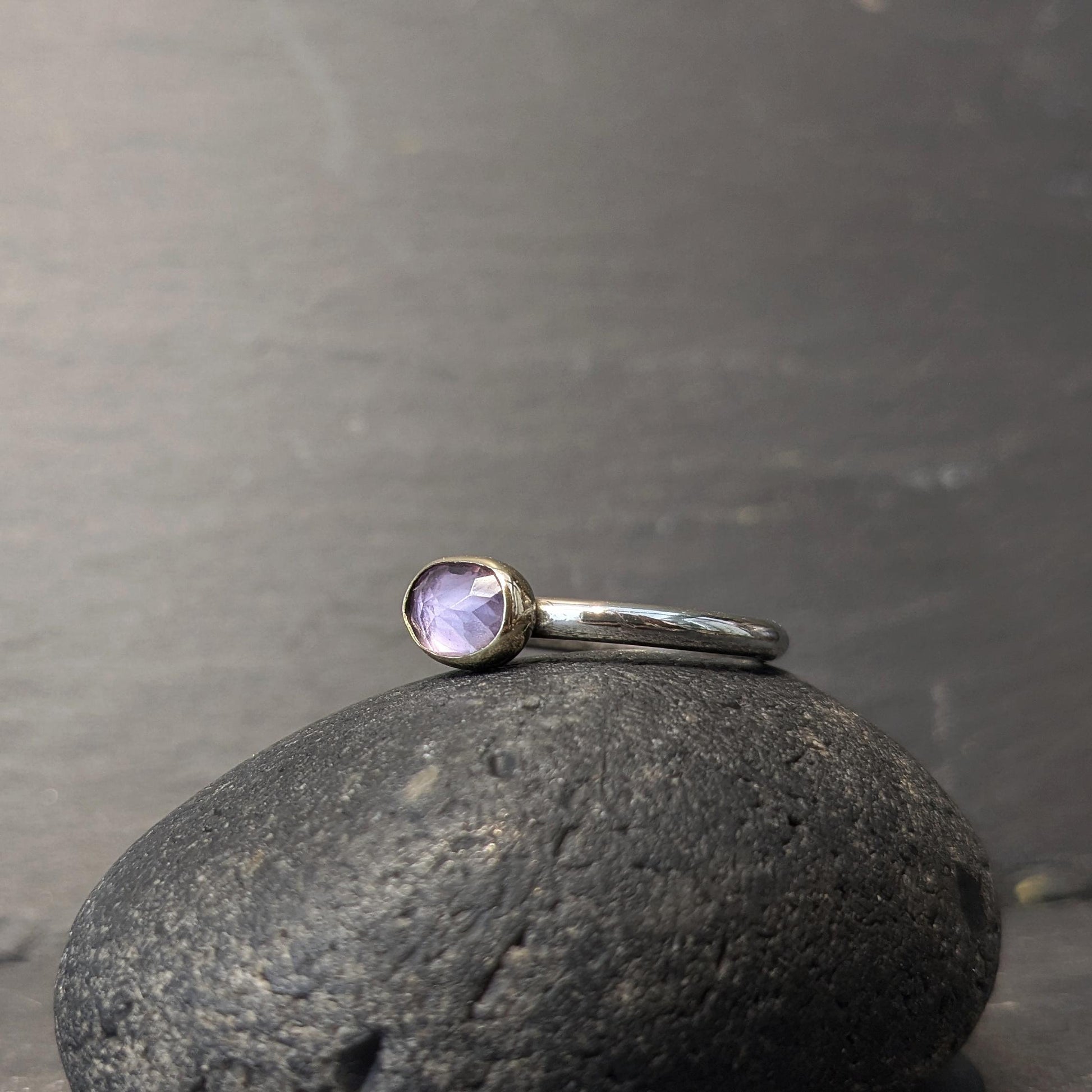 Facet slebet ametyst svøbt i guld