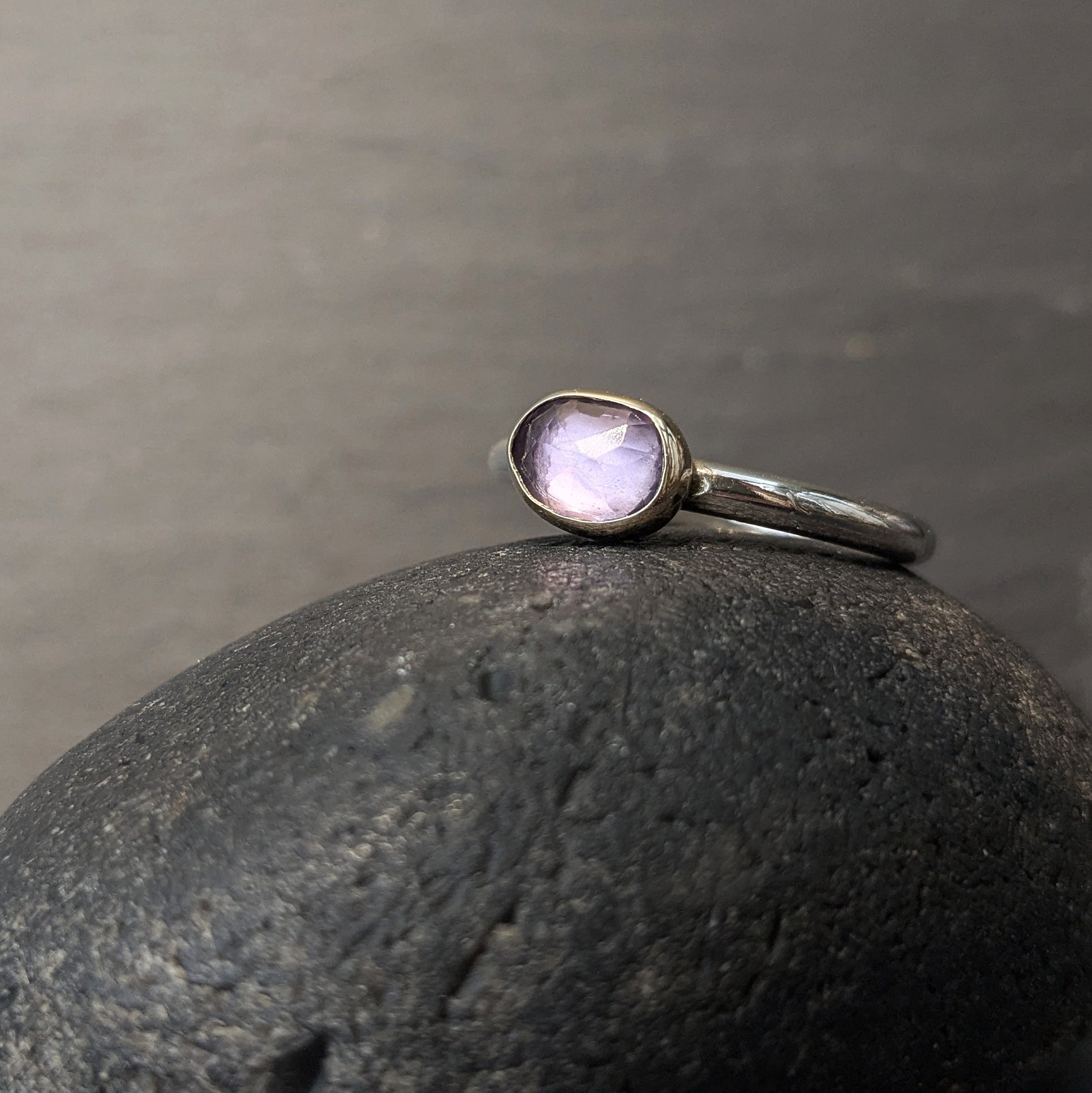 på kraftig ringskinne i sterlingsølv.