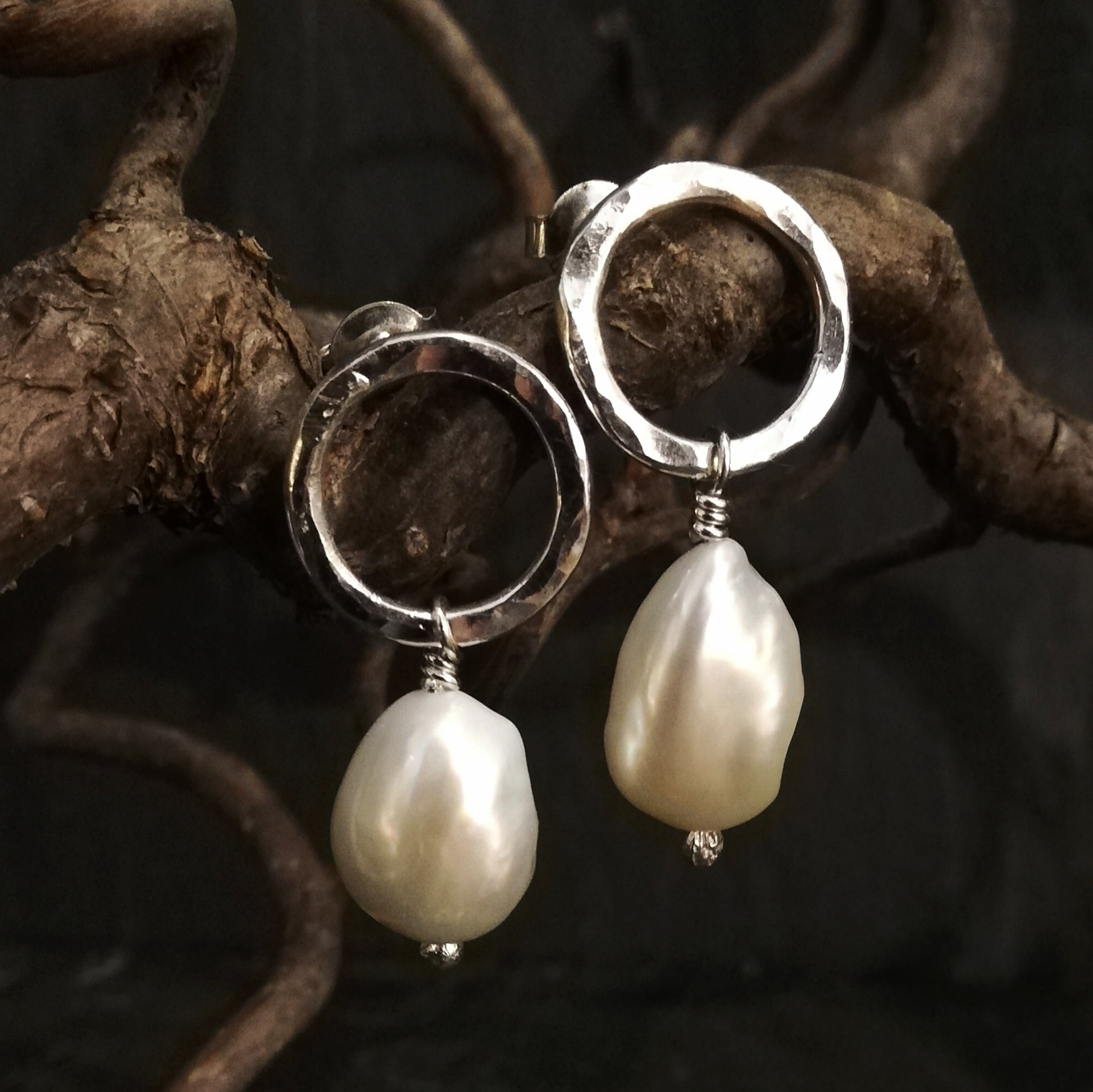 Ørestikker med smukke Barokke hvide ferskvands perler