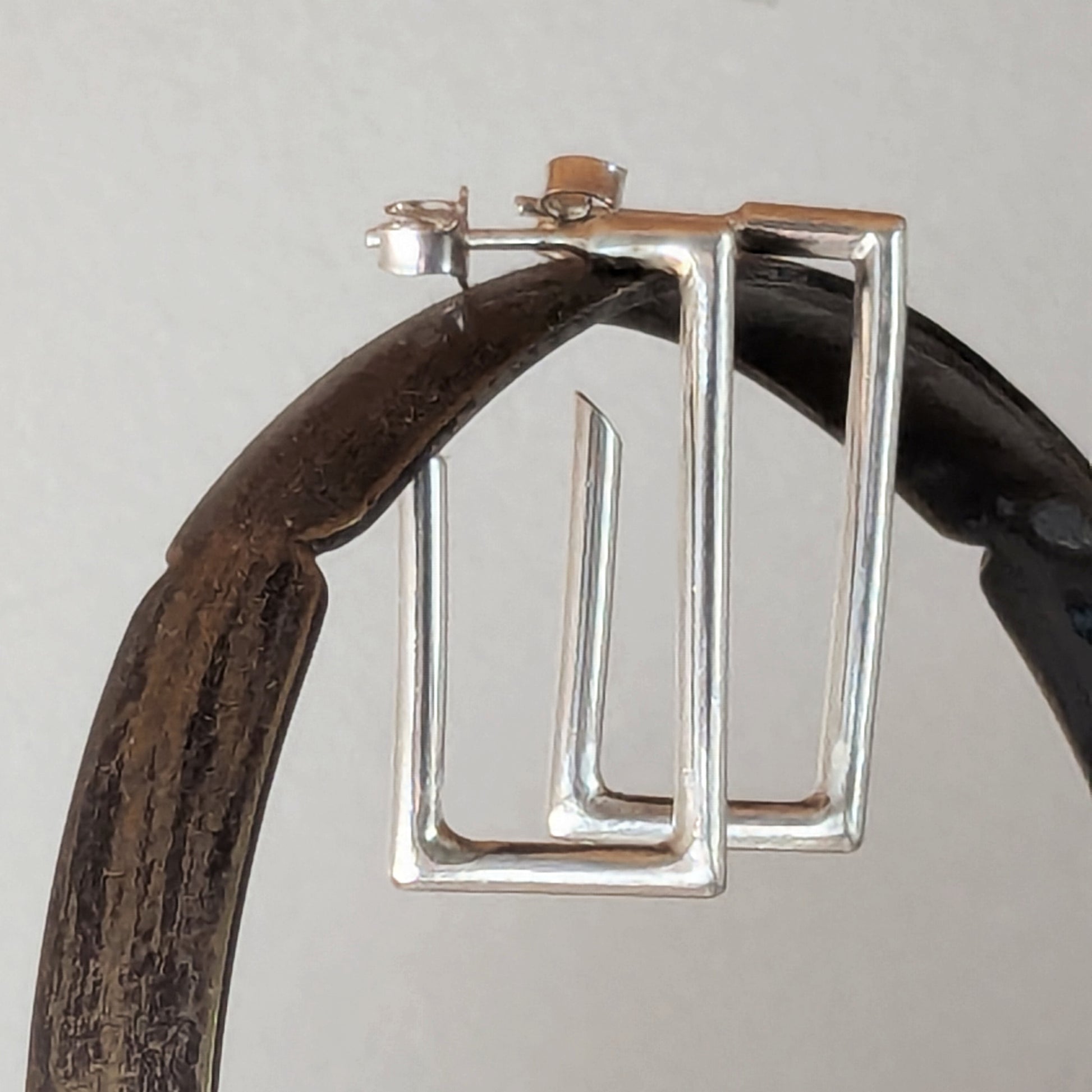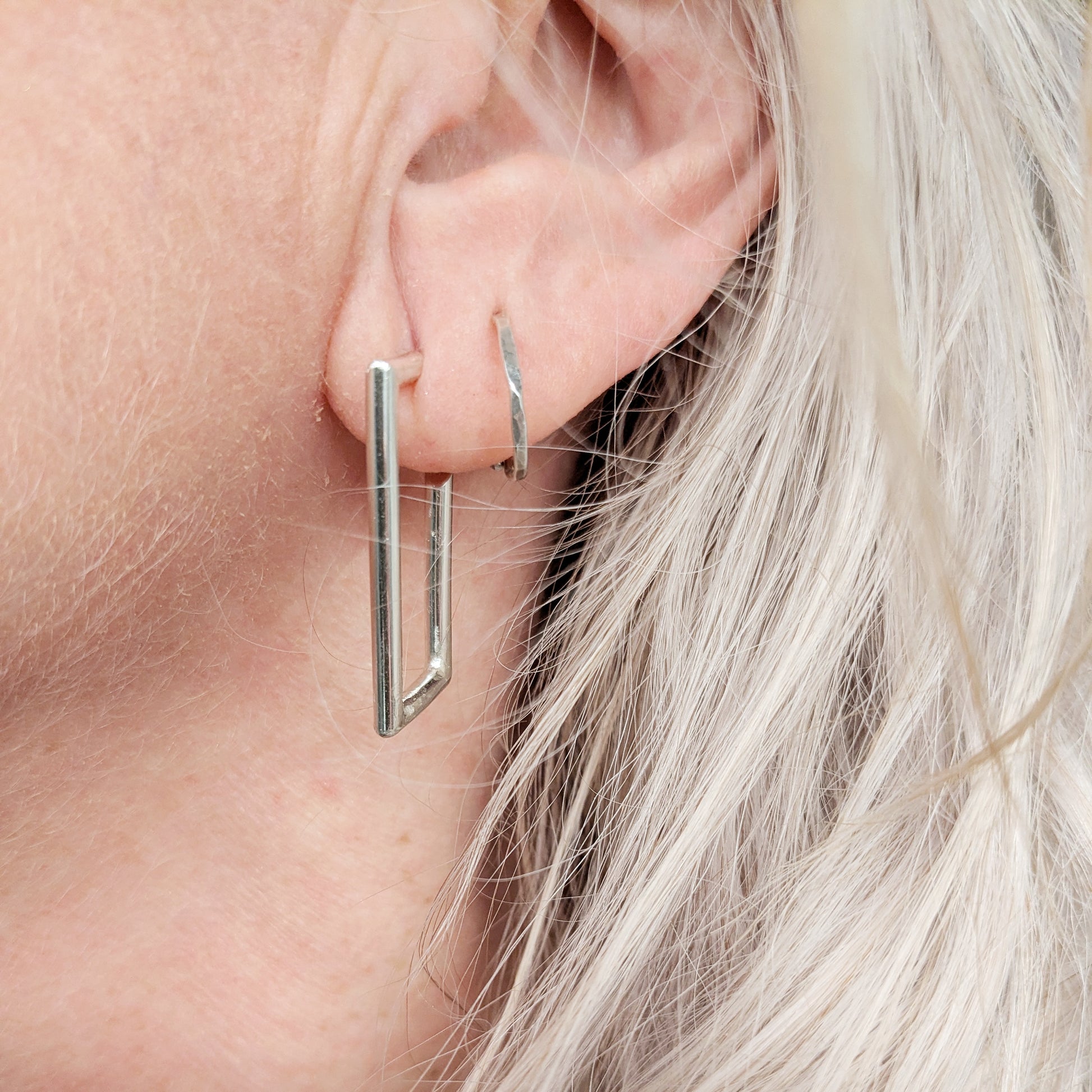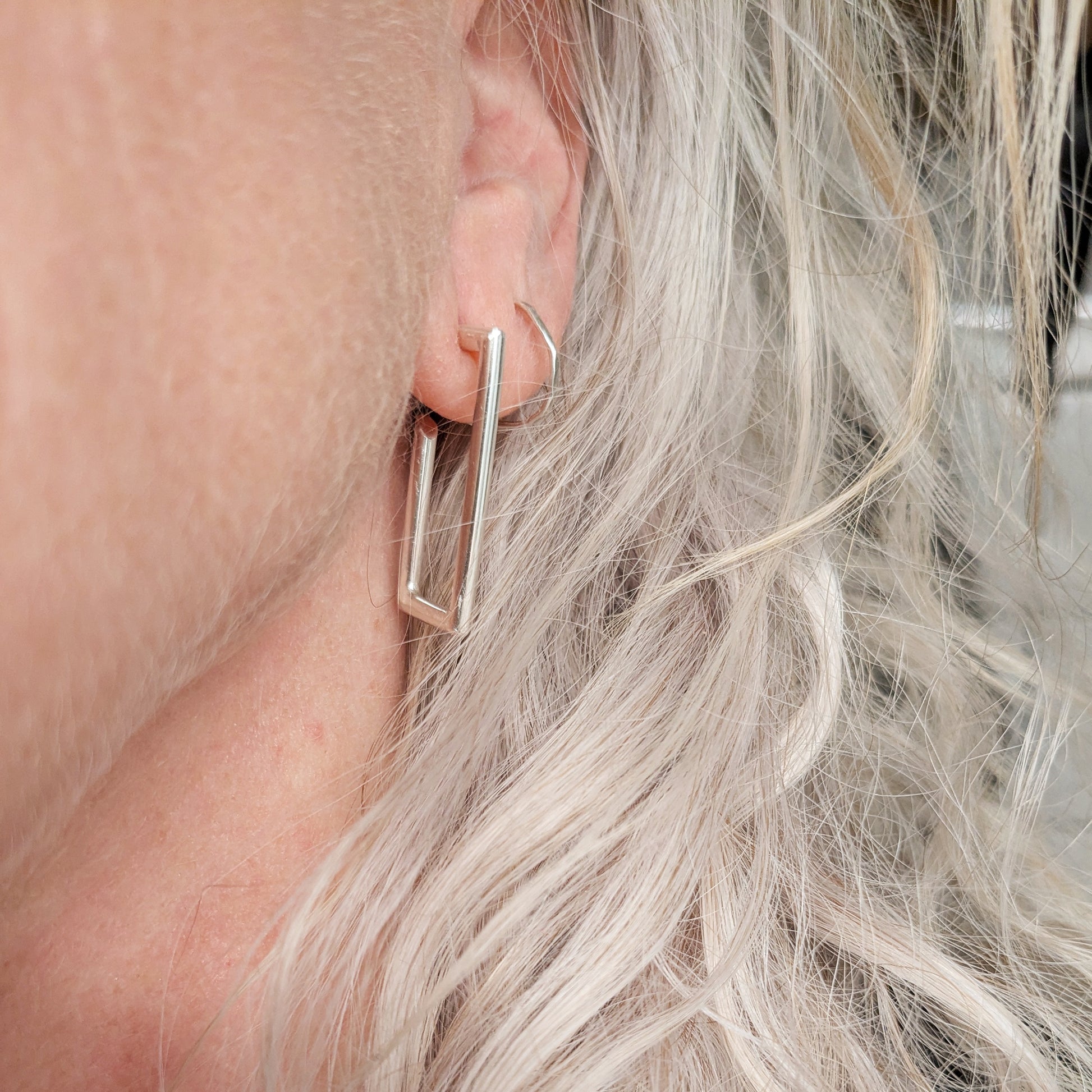 Frame-øreringene er håndlavede i sølv med et chunky rektangulært udtryk