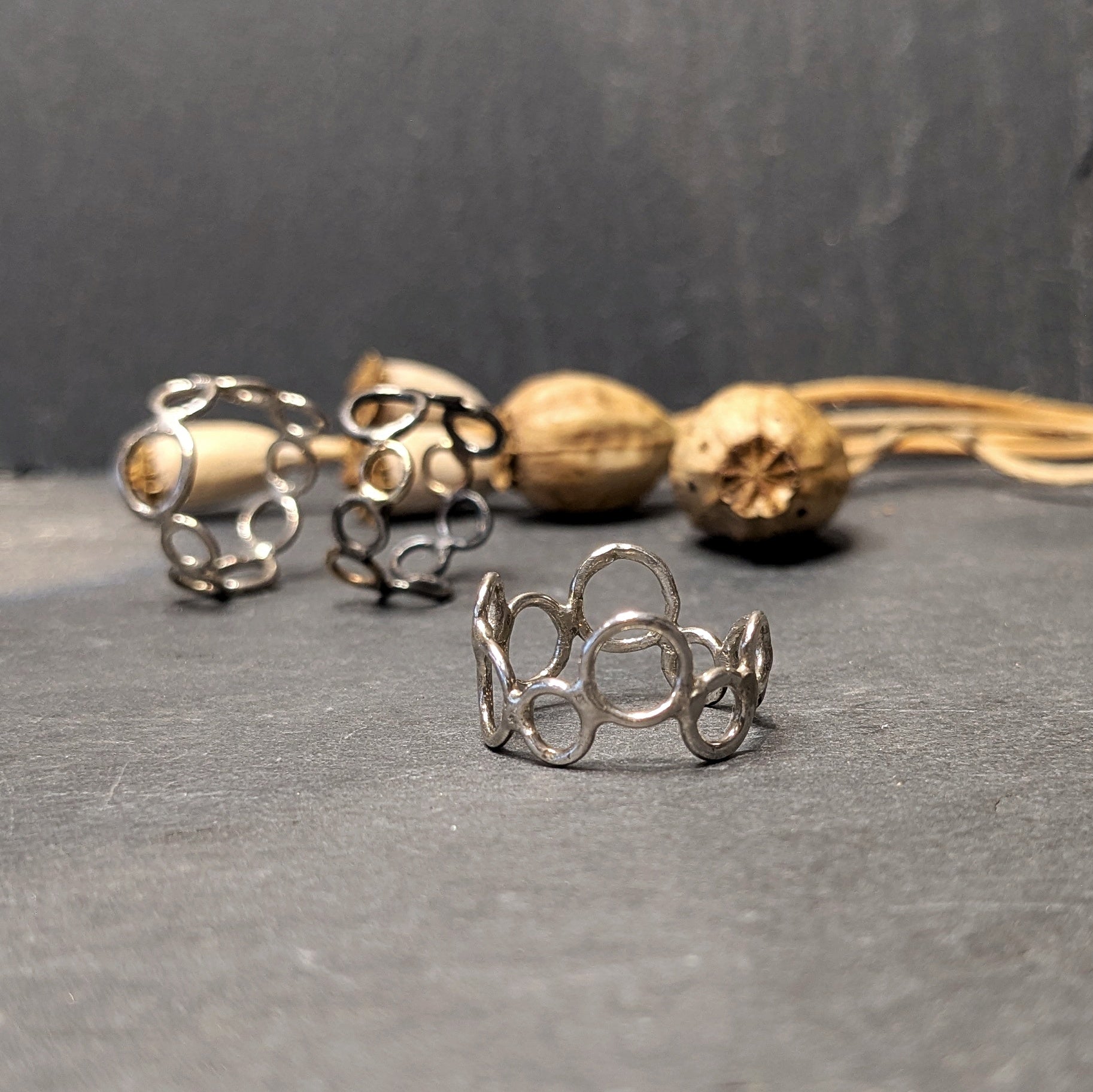 Enkelte af smykkerne er støbte af sterlingsølv rester fra min smykkefremstilling, disse smykker bliver ikke stemplet med (s 925)