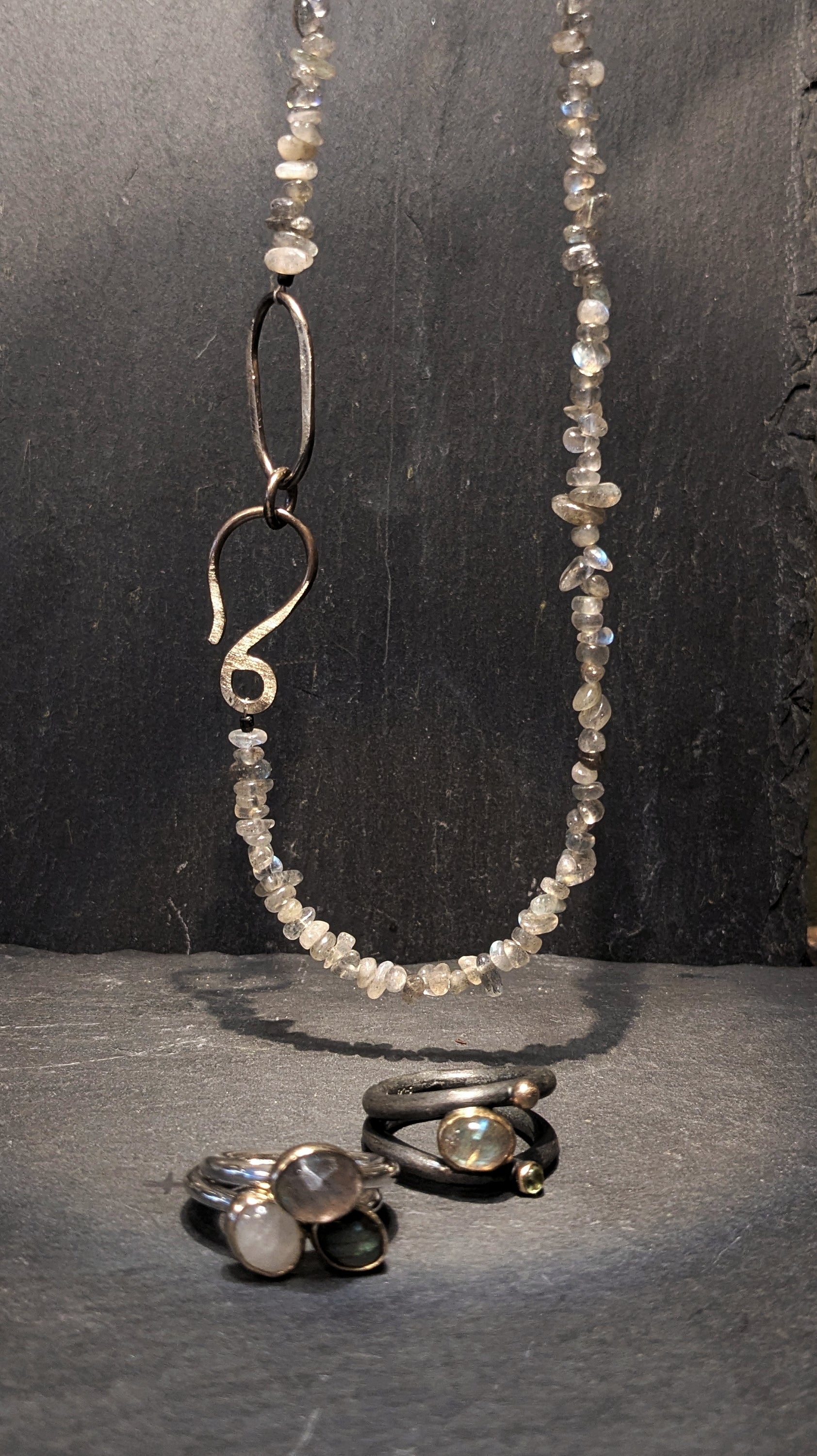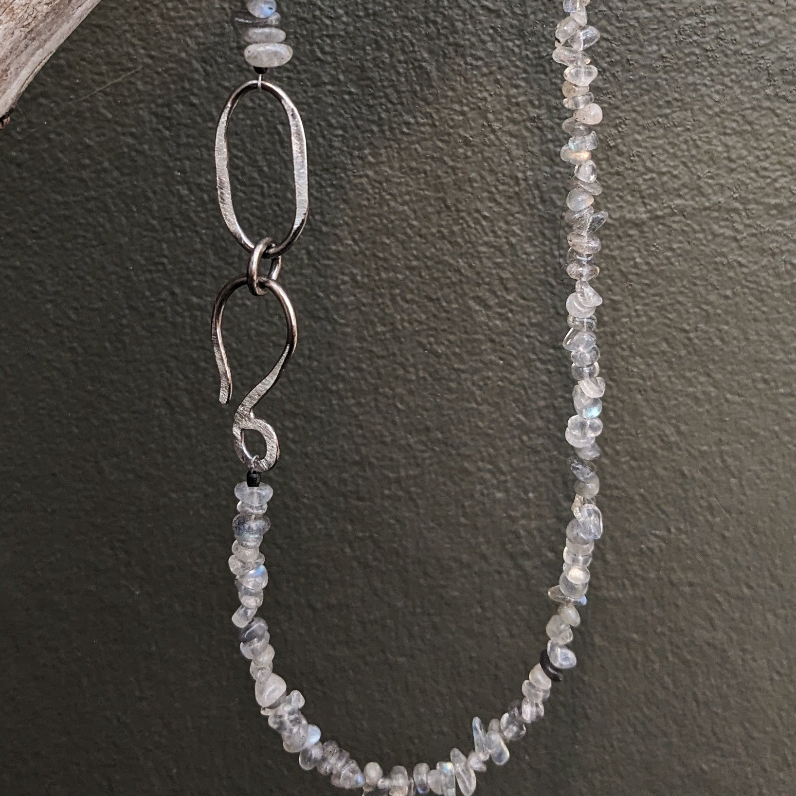 Kort halskæde med labradorit sten og håndsmedet lås.