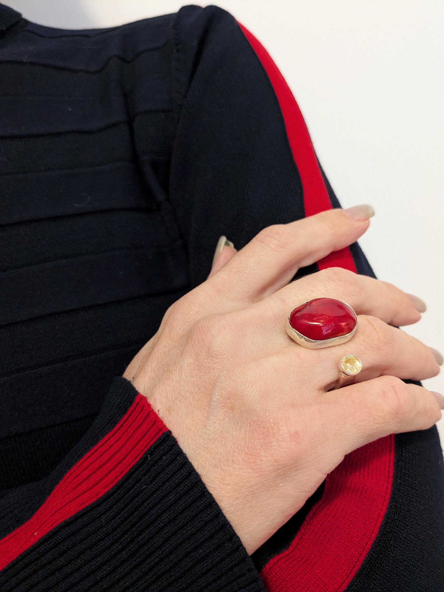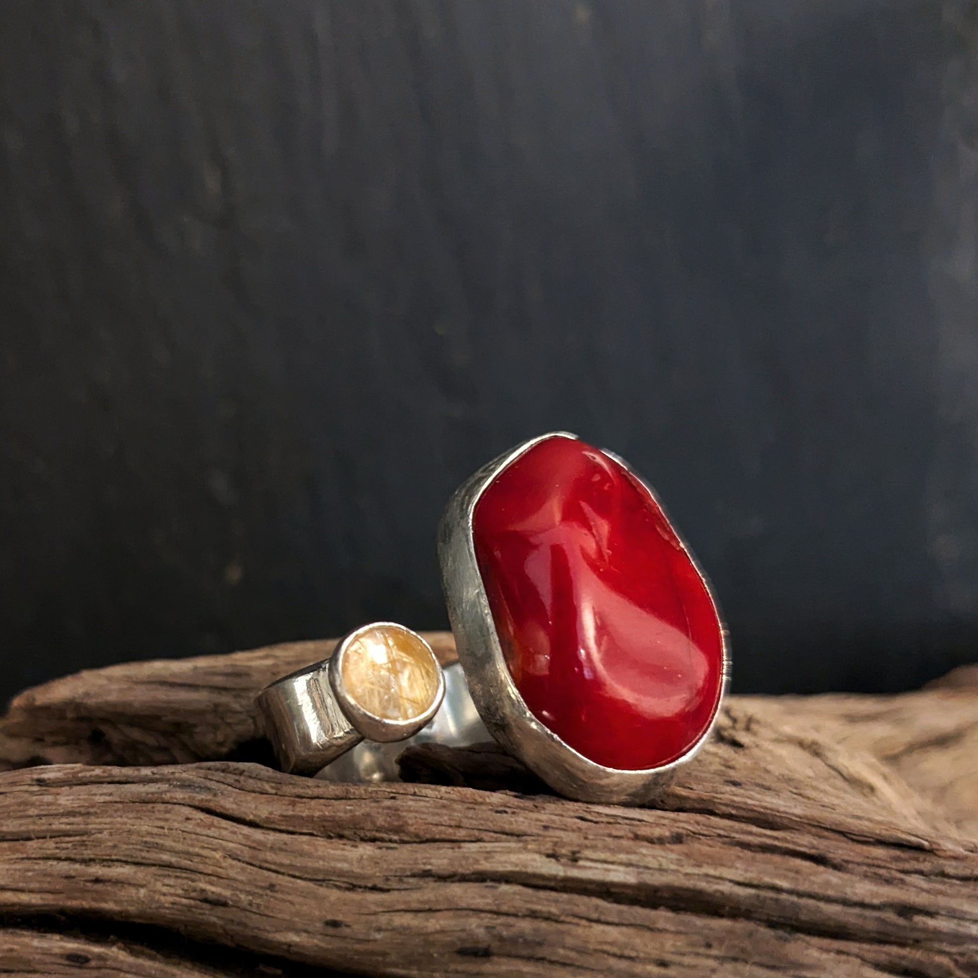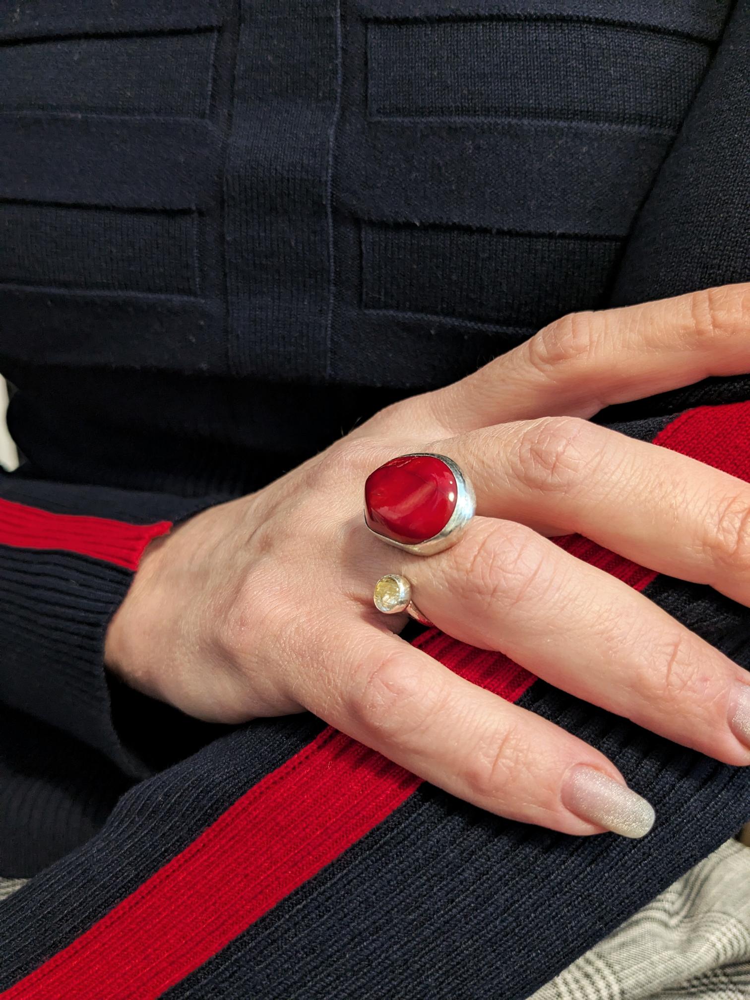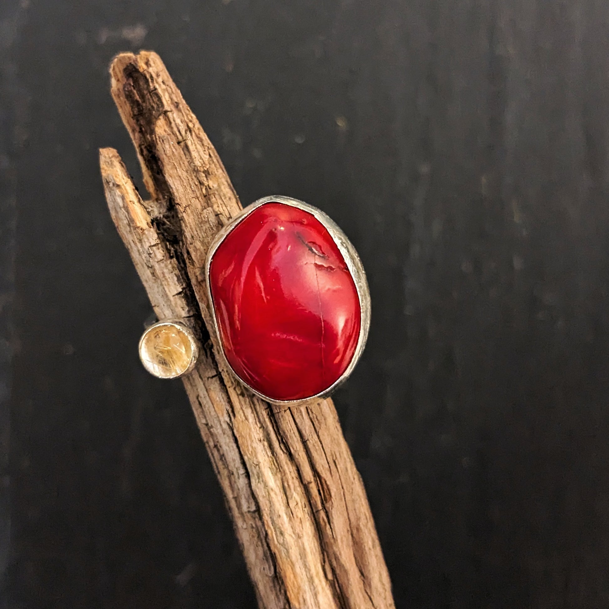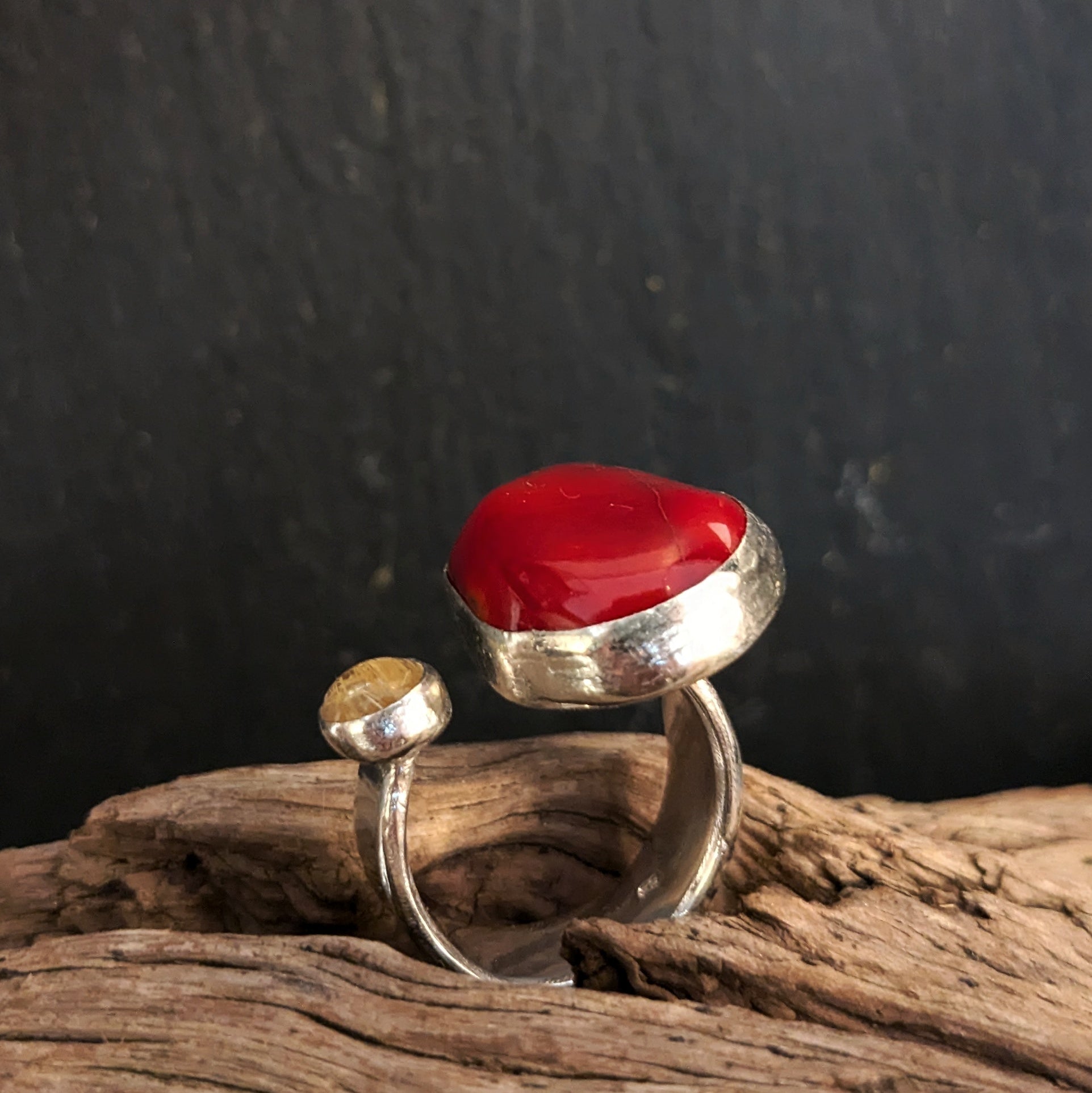 Åben ring med "Coral sten" og golden rutilquartz