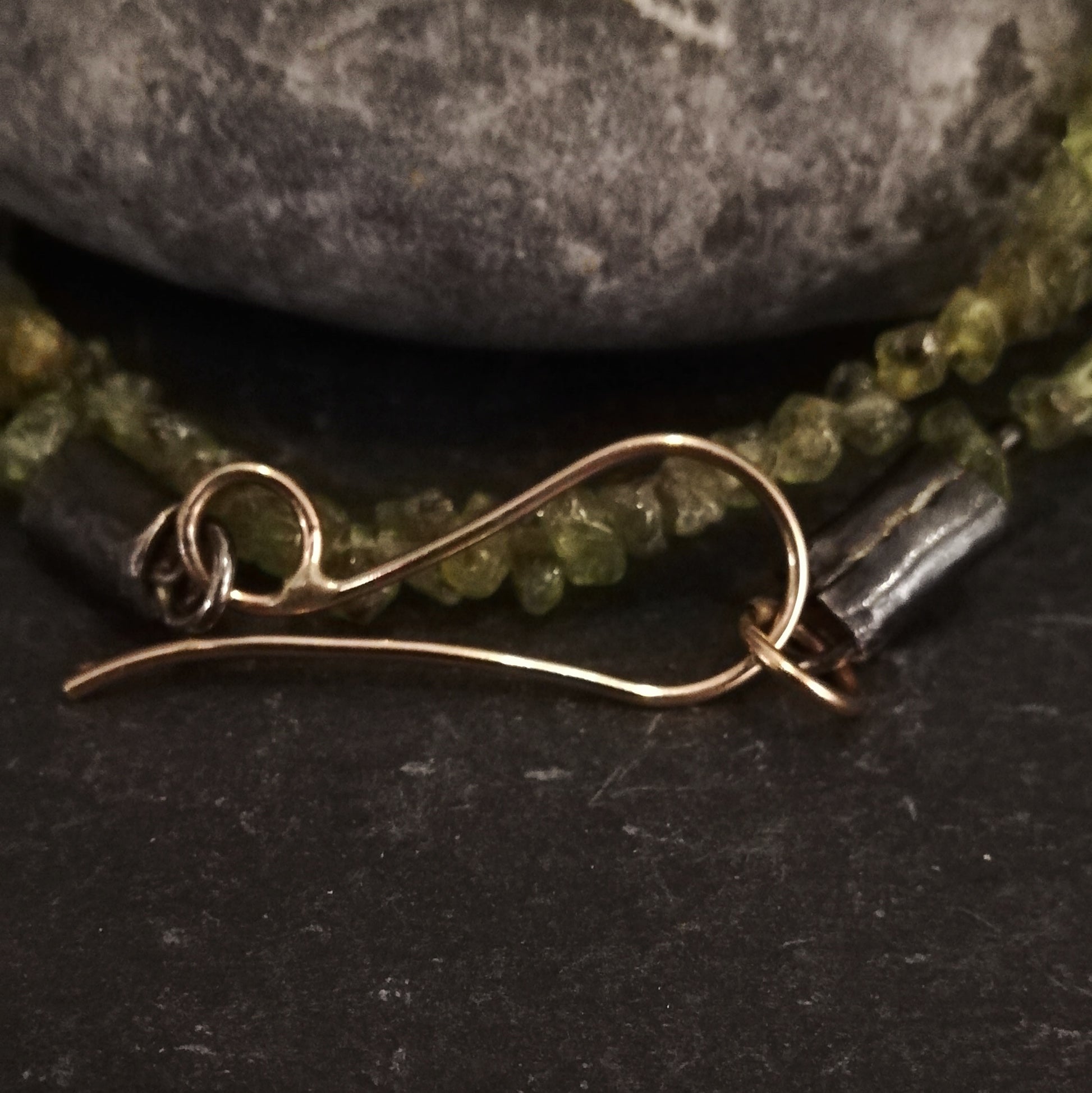 med oxyderede endestykker, håndsmedet guld lås og øskner.