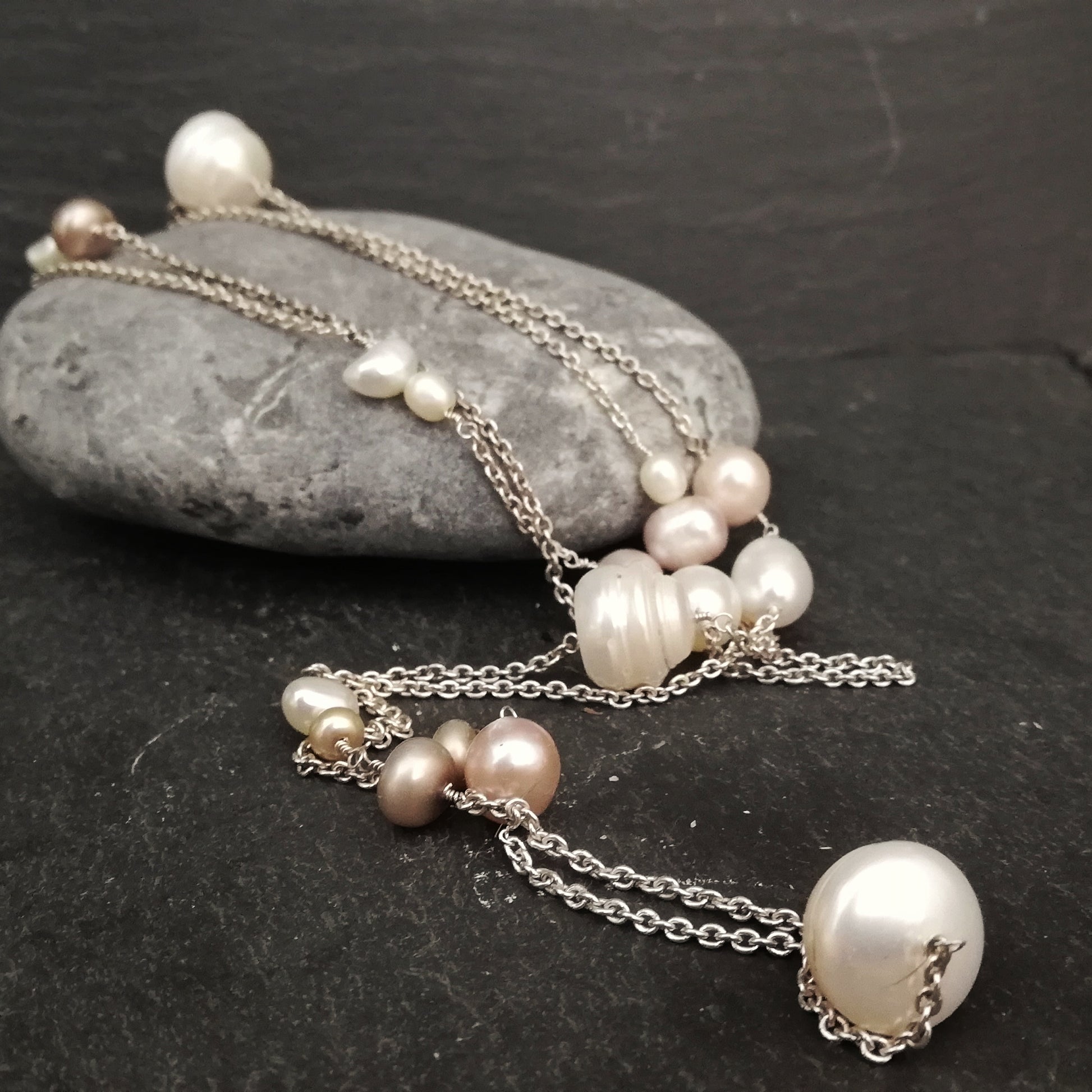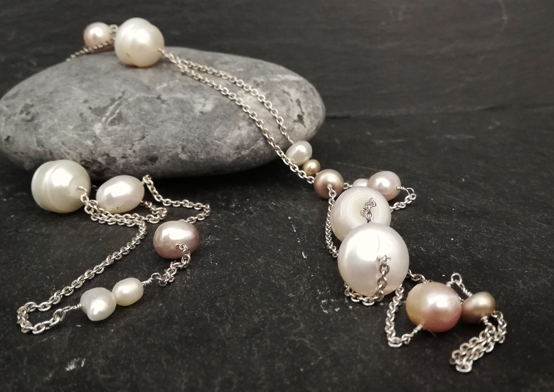 Jeg bruger både acryl og forskellige sten i mine smykker, nogle er mere sarte end andre så pas ekstra god på dit smykke hvis det indeholder sten eller acryl.
