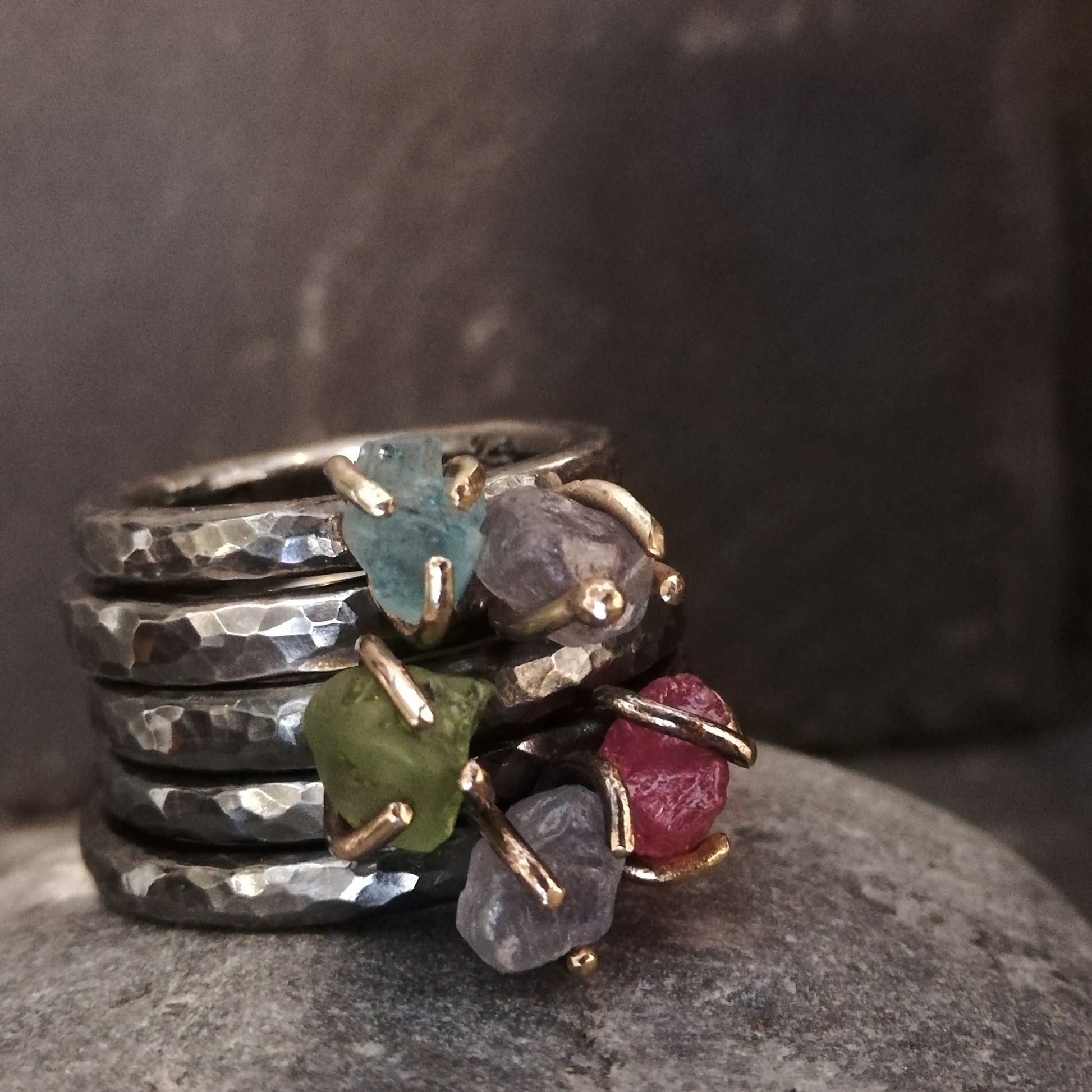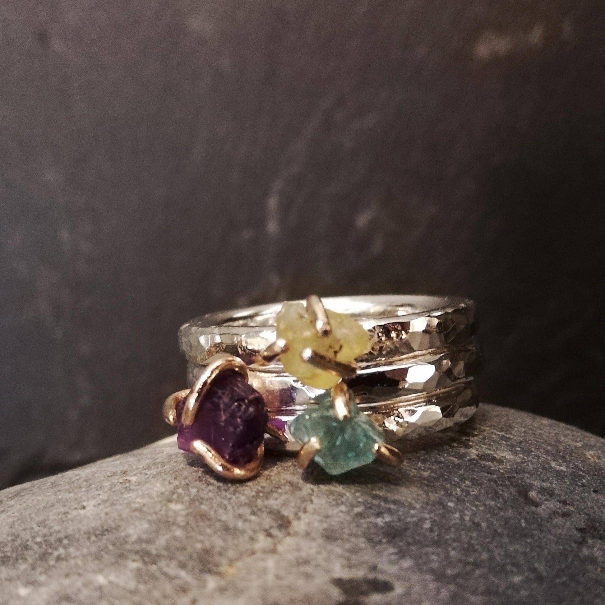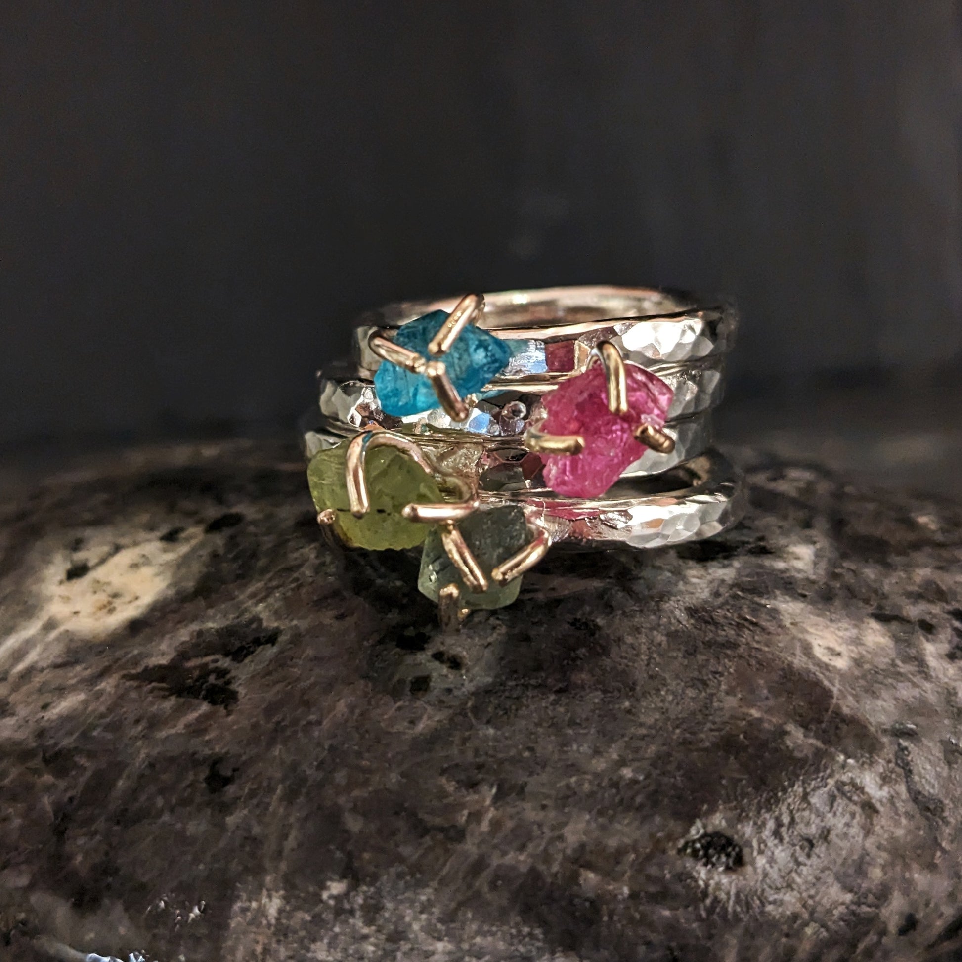 Rå ædelstens krystal (valgfri farve/sten) i guld fatning.