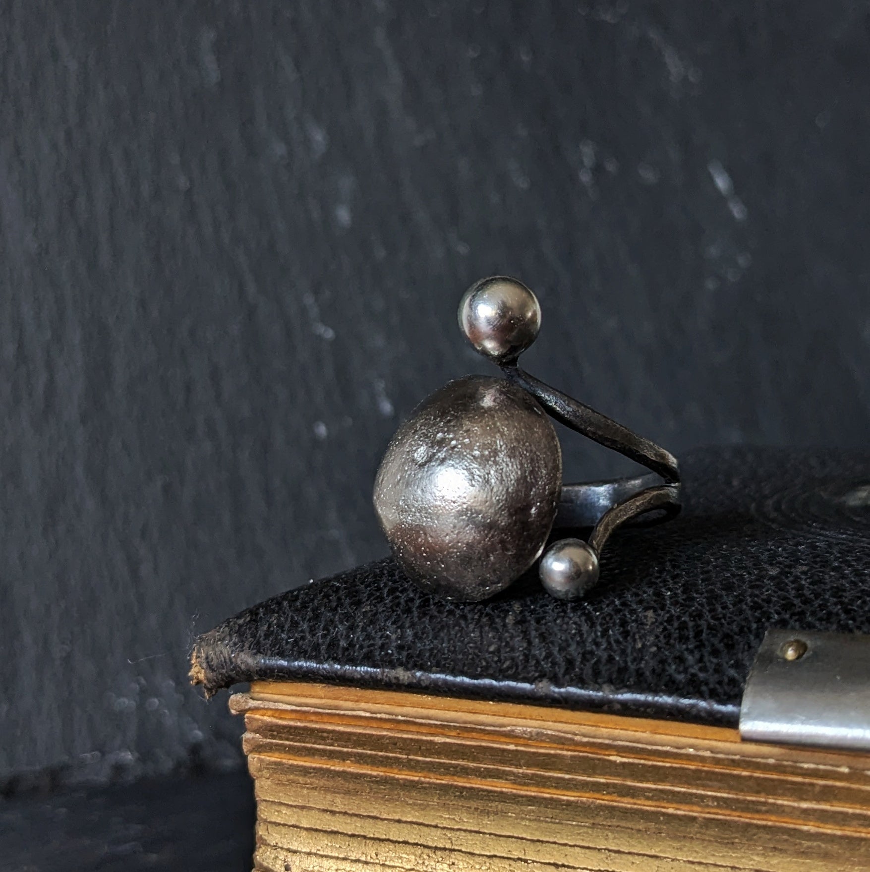 Skulpturelt design med stor sølvplanet og to små Satellitter