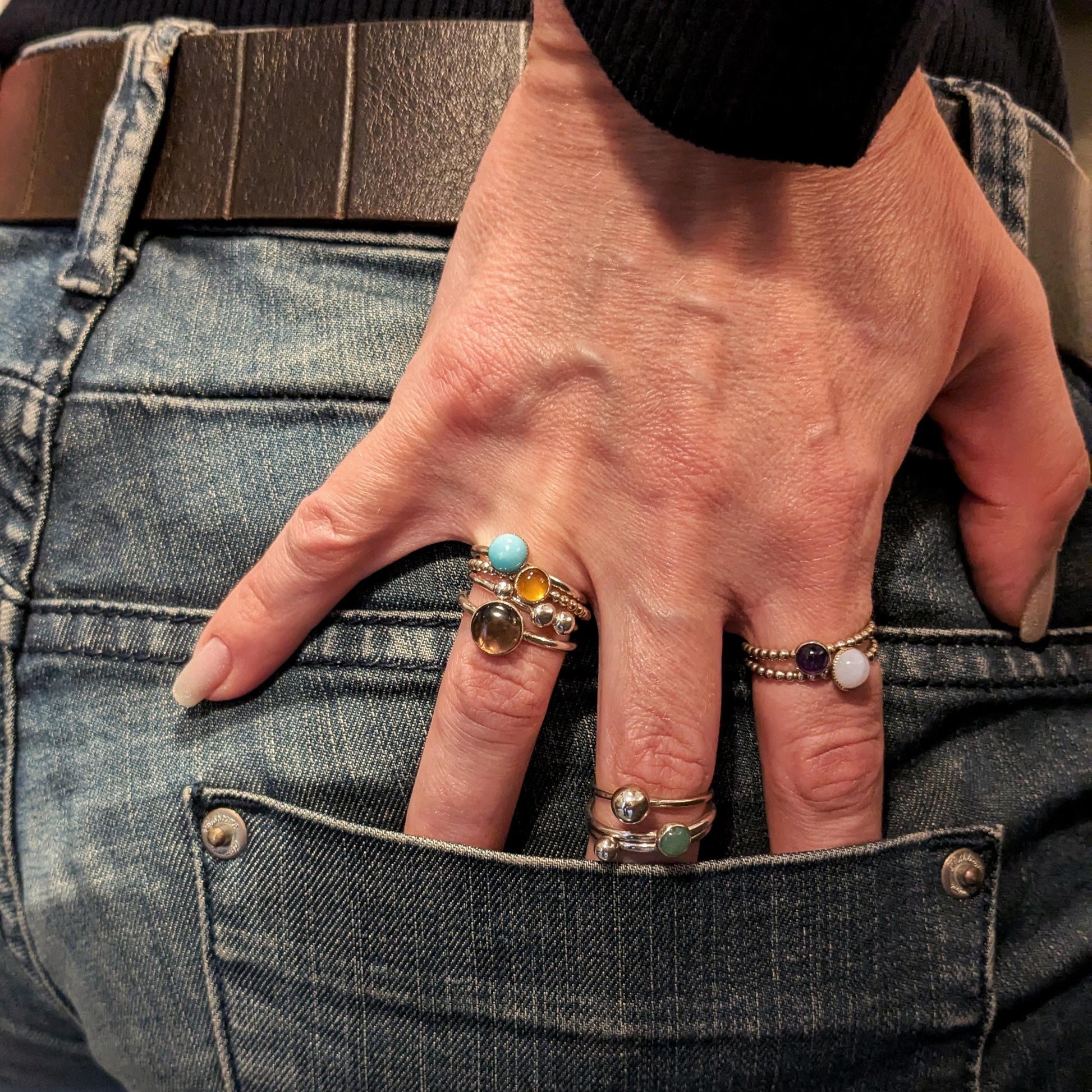 Jeg bruger både acryl og forskellige sten i mine smykker, nogle er mere sarte end andre så pas ekstra god på dit smykke hvis det indeholder sten eller acryl.