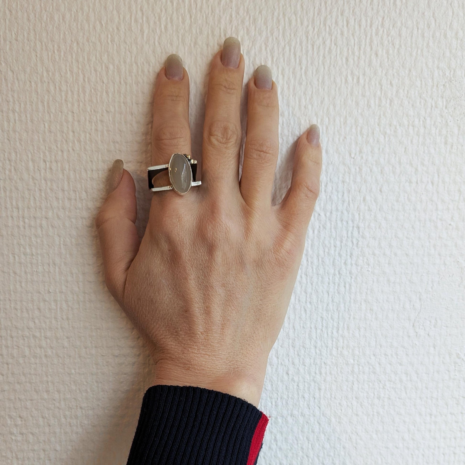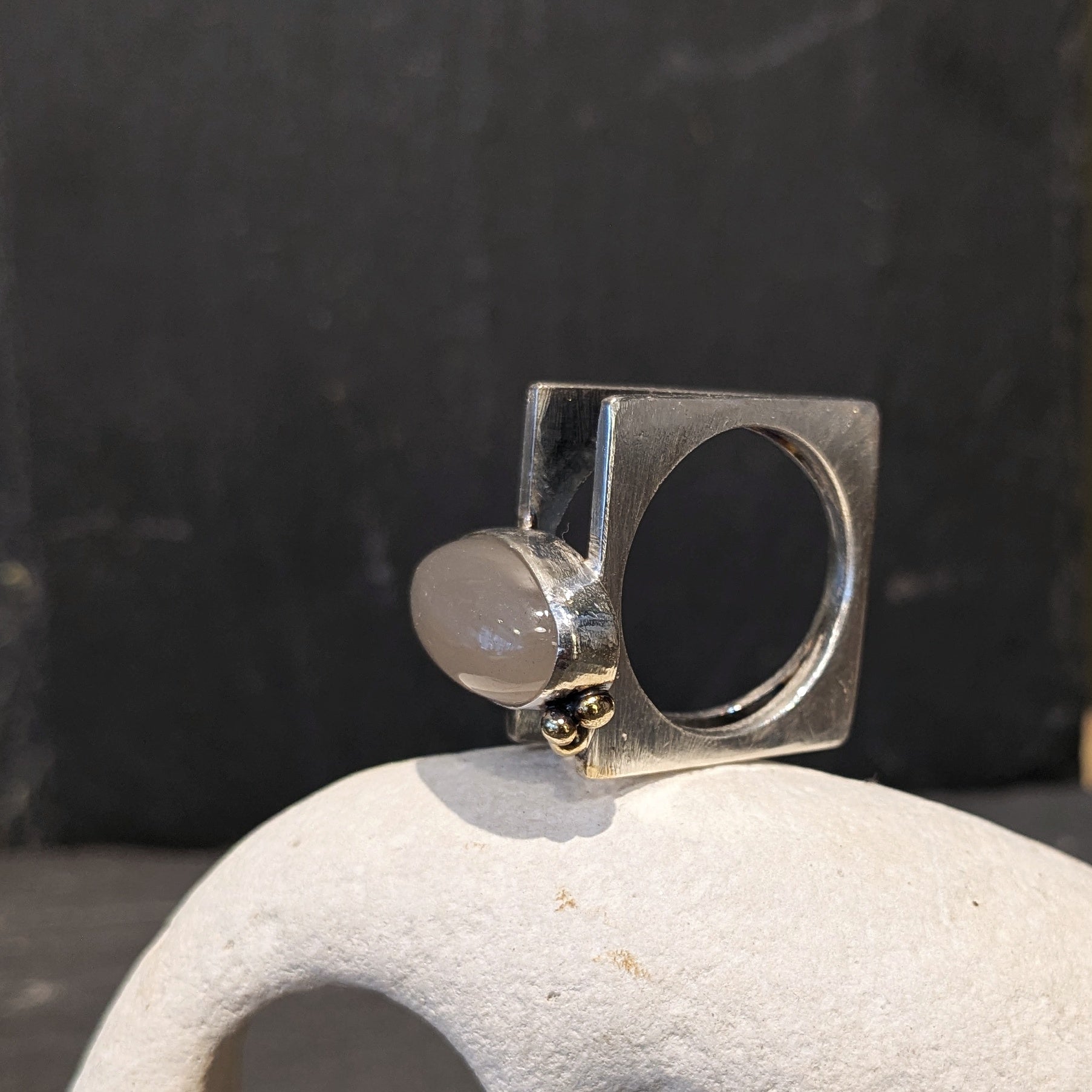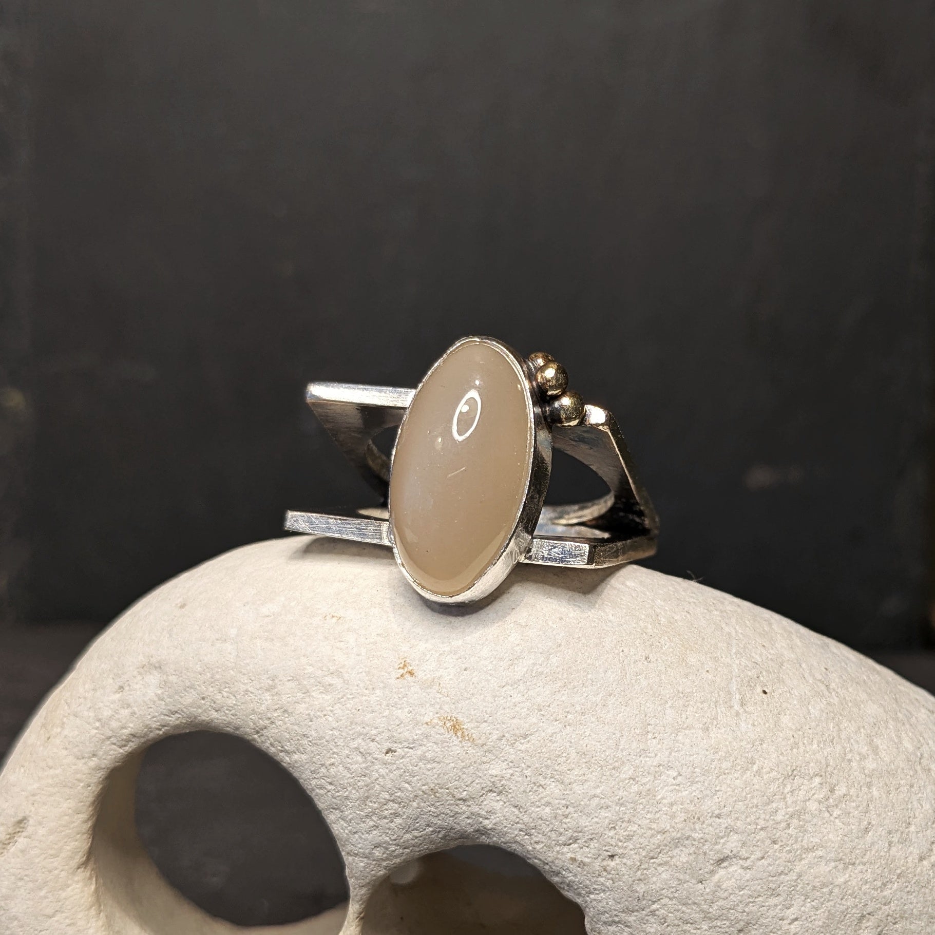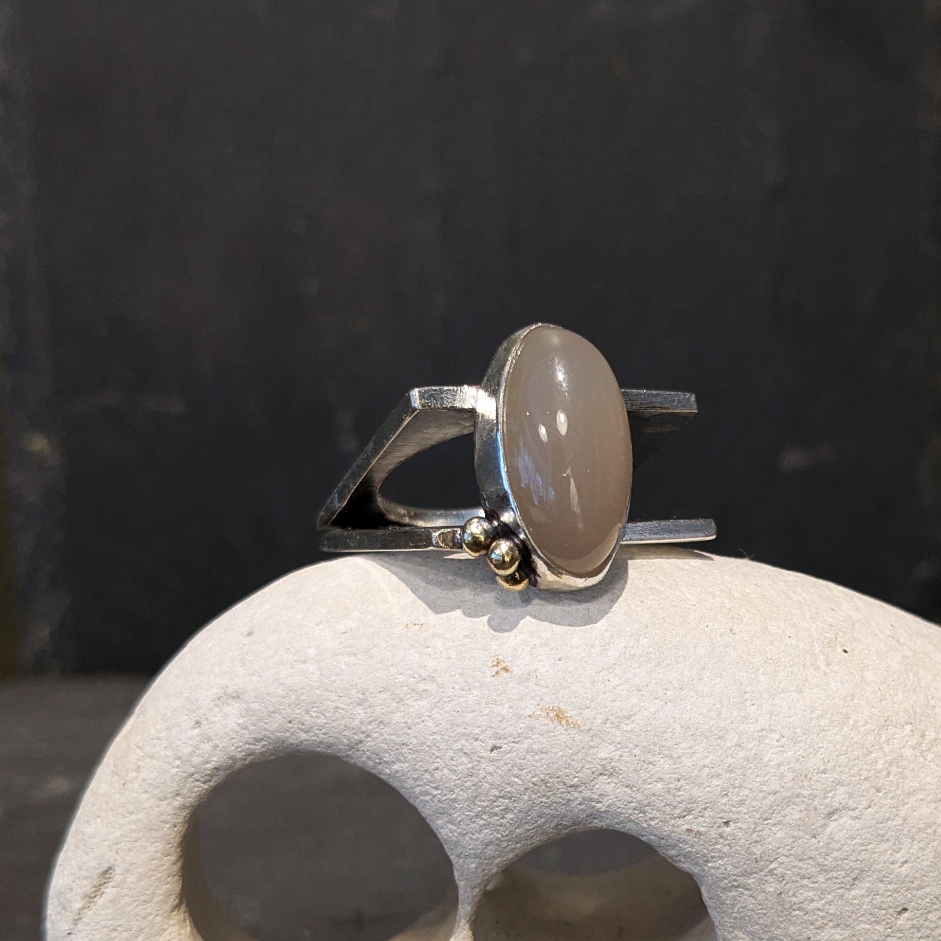 Sterling sølv ring med fine guldkugler og en Smuk Grå-Brun månesten.